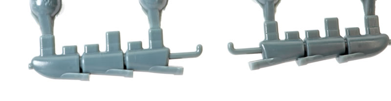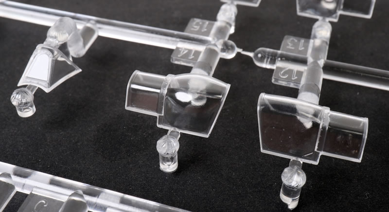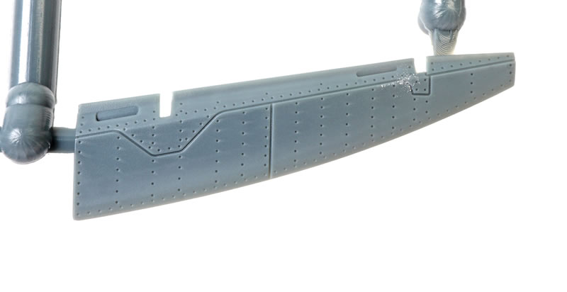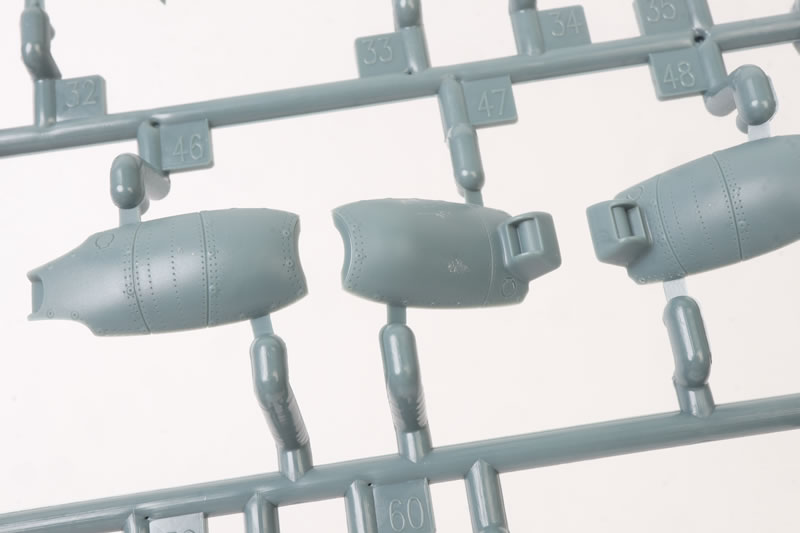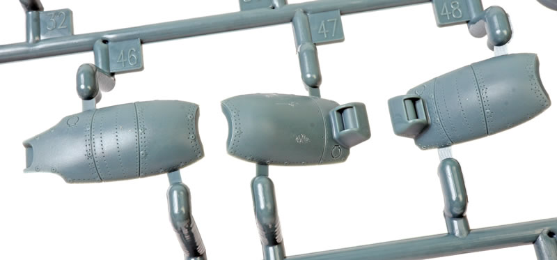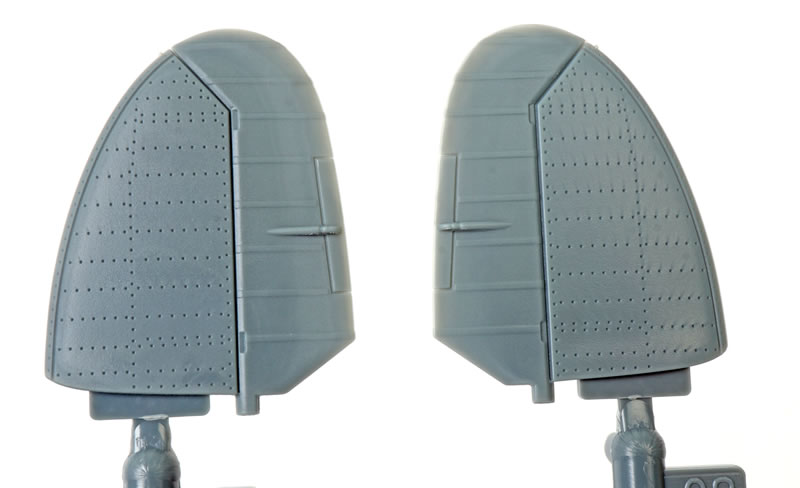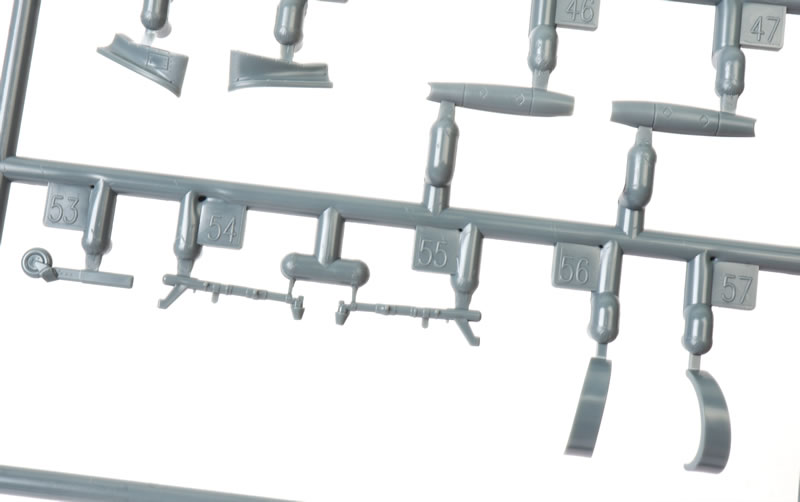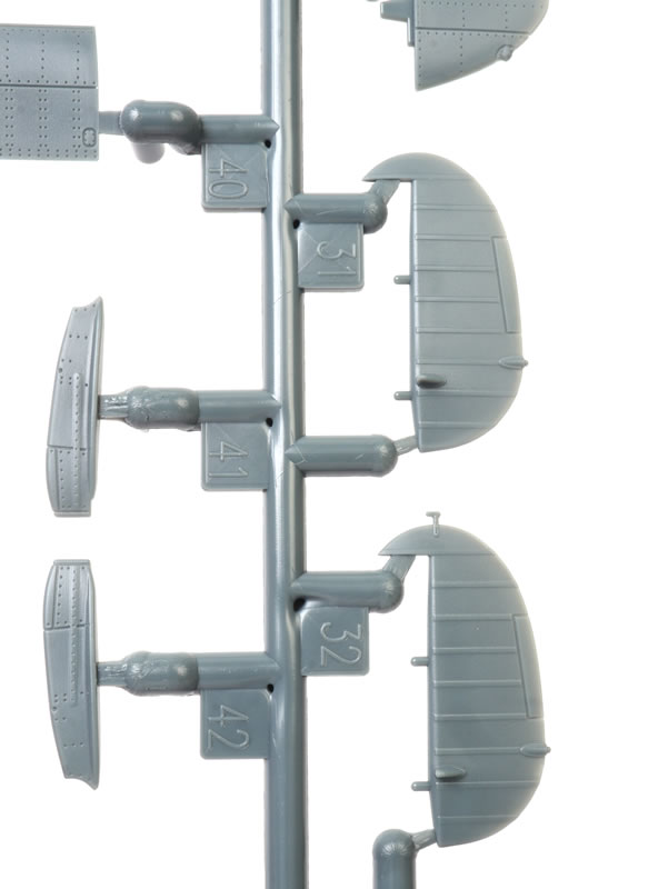 The first thing you will notice as you remove the sprues from their bags is the exuisitely subtle and crisp surface textures. Recessed panel lines, rows of rivets and shrewdly executed fasteners. The photos do not quite do justice to the subtlty of the textures.