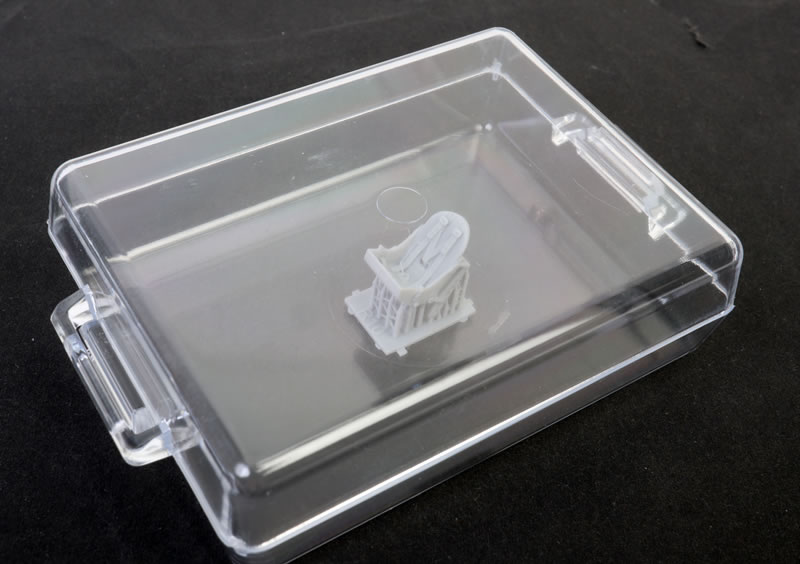 The rear mount is attached to the seat and are finely detailed. It comes securely attached in a clear protective box. The very fine printed support pillars should be very easy to remove.