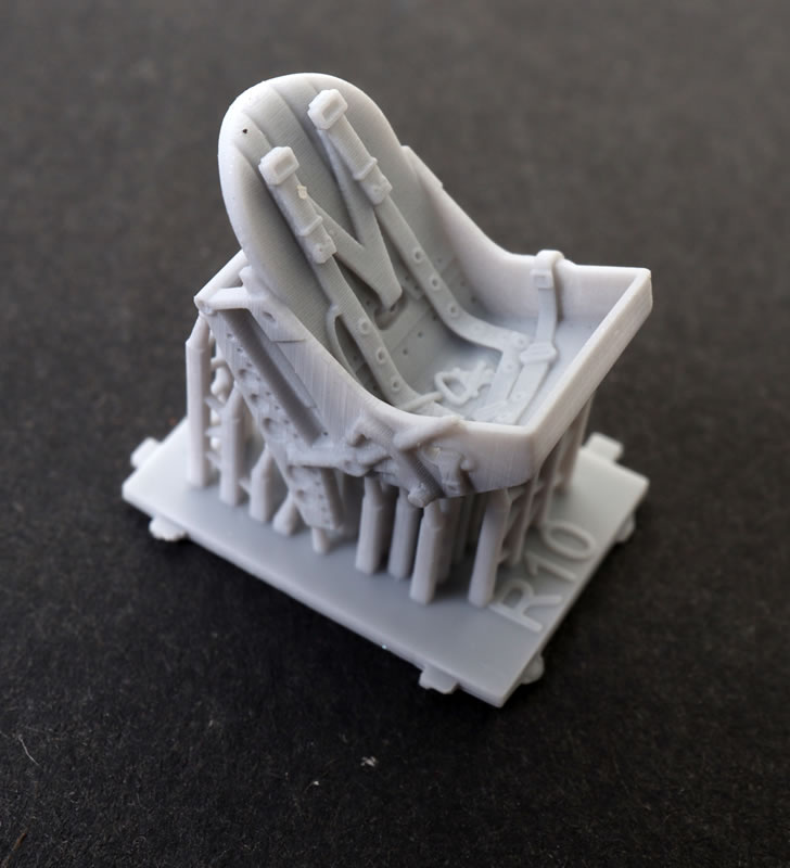 Designed to fit the latest and highly regarded IBG kit, this is a beautifully 3D printed seat with the belts reproduced perfectly and a tiny PE fret that gives the rearward extension belt and mount.