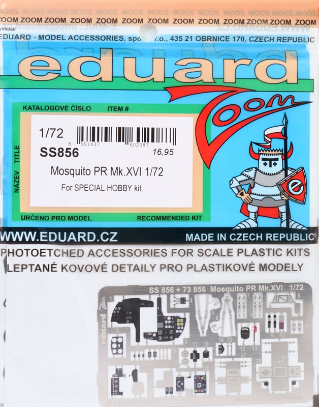 This double set of PE frets in the usual clear resealable plastic sleeve with card inserts to avoid damage to the frets and is designed for the very recent Special Hobby kit, but, like so many of these sets, could be adapted to fit any similar kit.