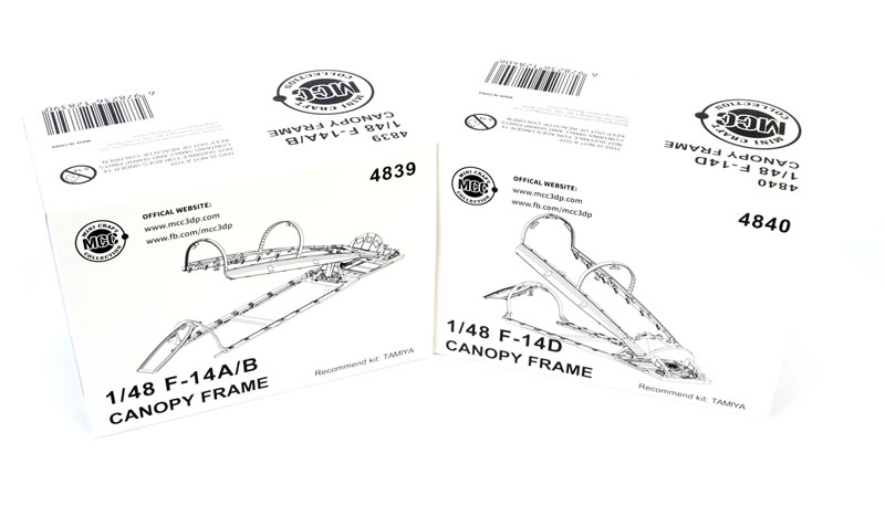 MCC has just released two 1/48 scale replacement canopy frame sets - one for the Tamiya F-14A/B kits and one for the Tamiya F-14D kit.