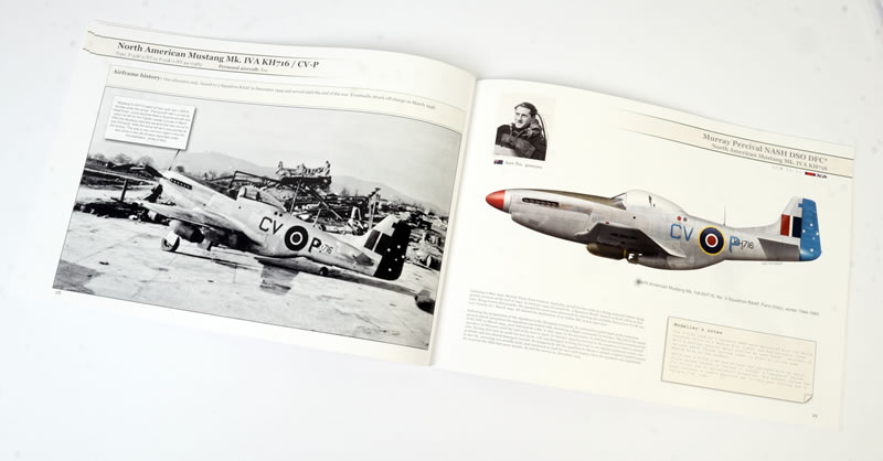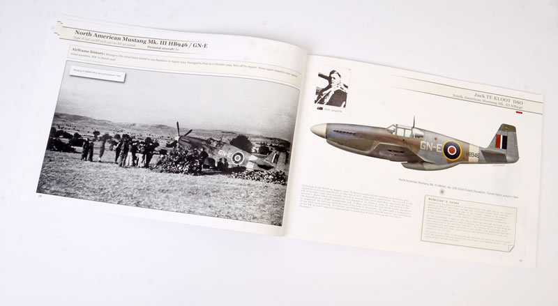 The debut volume, Aces & Leaders – The North American Mustang over Italy & the Balkans, weighs in at 64 pages in landscape format plus covers, printed on heavy satin-textured stock. The glossy cardboard covers and perfect binding give the book a suitably robust, high-quality feel.
