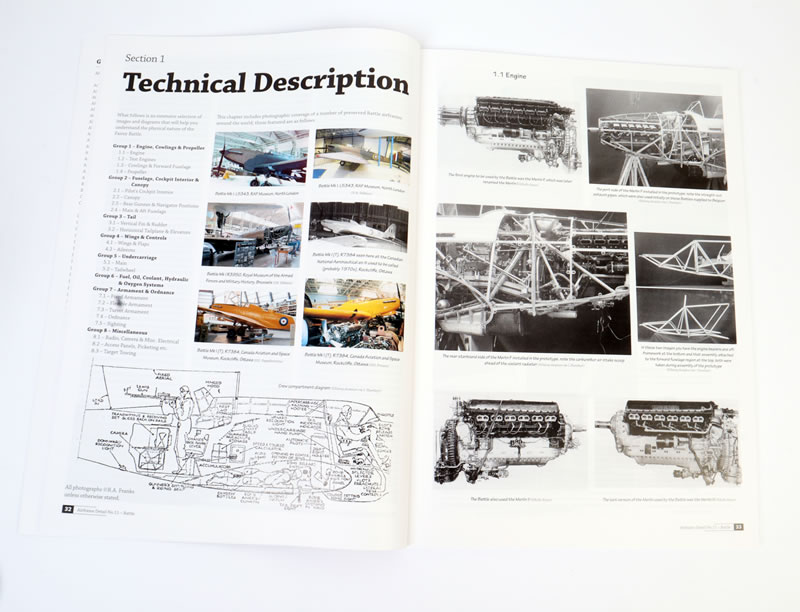 Reproduction quality is excellent throughout, with crisp line drawings and well-chosen photographs that highlight key details such as the Battle’s distinctive Fairey-Youngman flaps, the internal layout and elusive cross-section of the long greenhouse canopy, and the structural subtleties of the wing centre-section.
