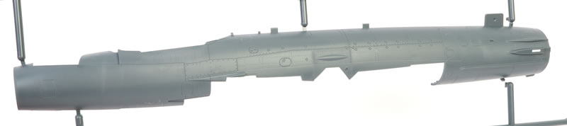 This kit features recessed surface textures and a modest parts count. Shape issues persist around the nose and spine, and the cockpit is fairly basic, but fit is good according to those who have built it. The included weapons and decals are usable.