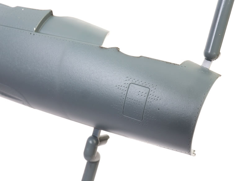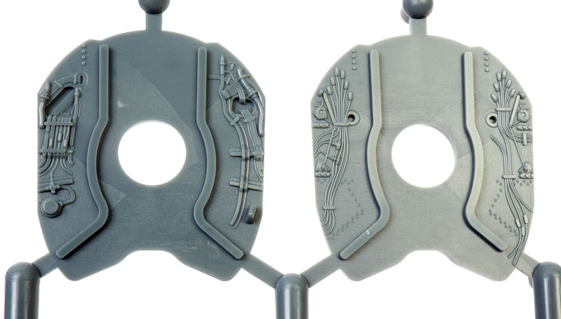 The plastic and photo-etched pilot’s seat will look good with its distinctive quilted backrest.