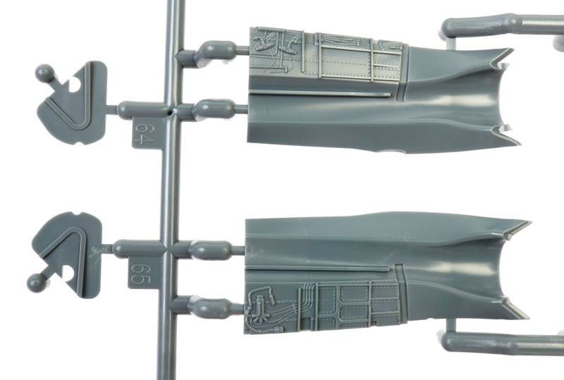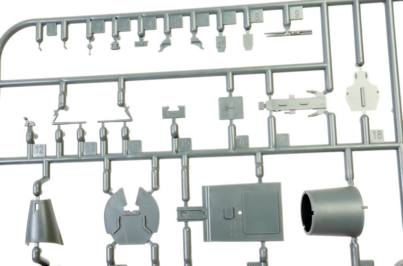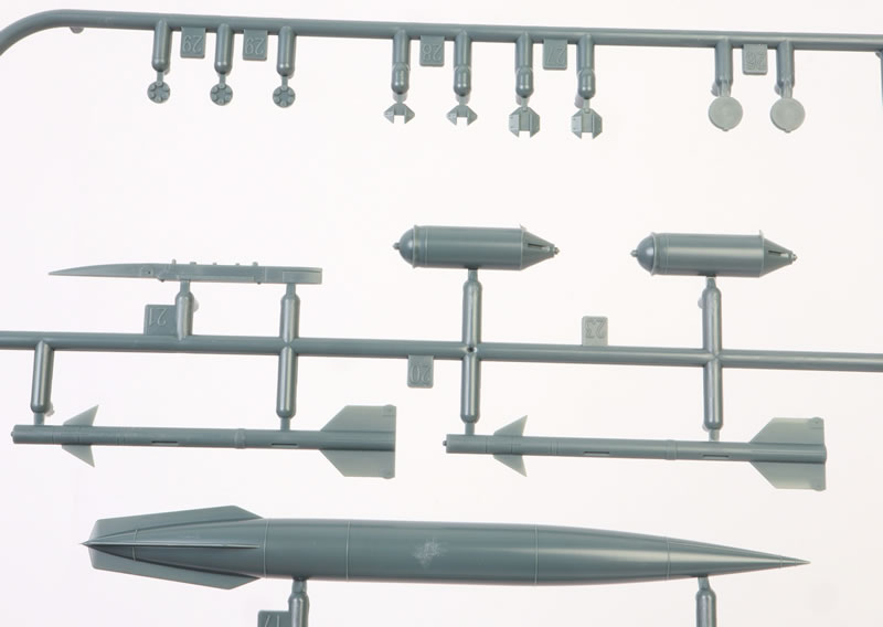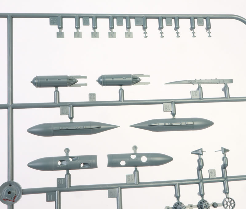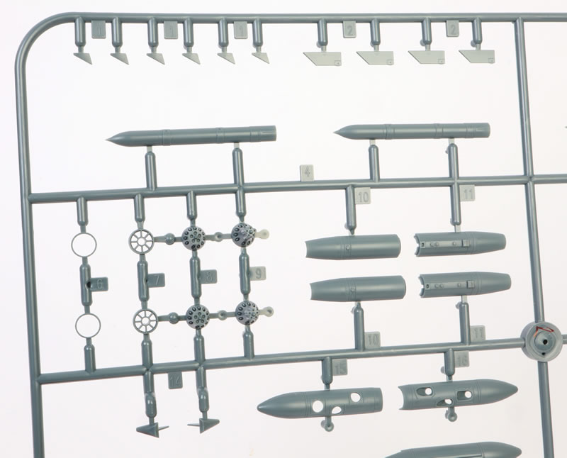 Once you subtract the unused pieces and the 66 items on the ordnance sprue, the unarmed airframe boils down to a very reasonable 129 grey plastic parts.