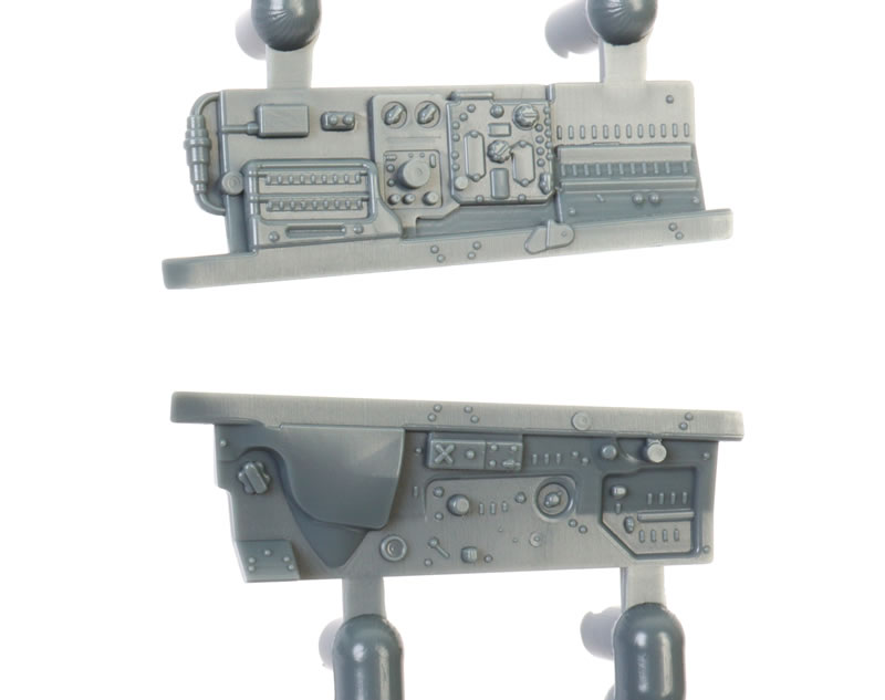 The cockpit receives an instant lift from the colour photo-etched fret, which supplies a layered instrument panel, side consoles and harness straps.