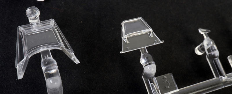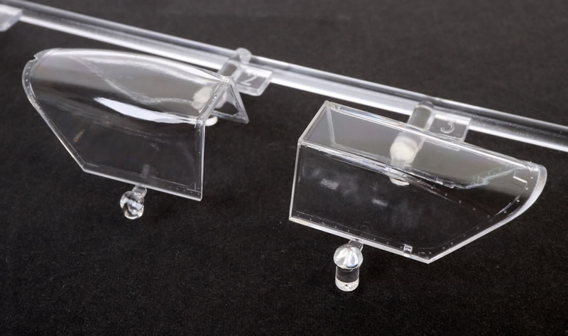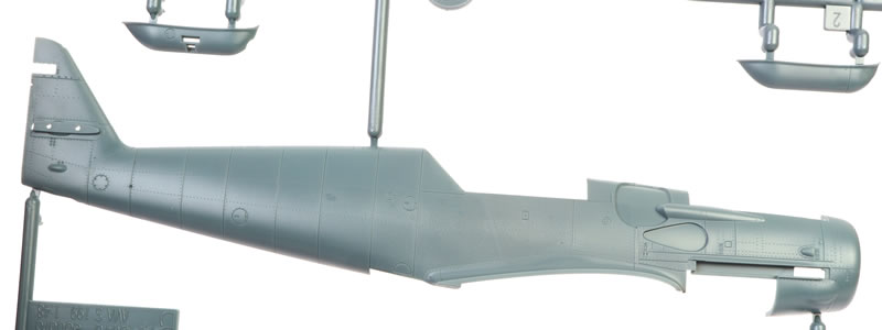 Clear parts include two styles of windscreen, one Erla Haube canopy, the Galland Panzer armoured glass panel, gunsight, navigation lights and the isolated mount for the underwing Morane mast. Two later versions of the blown sliding canopy are also supplied but are not used in this boxing.
