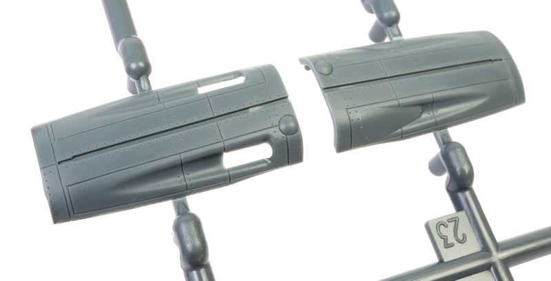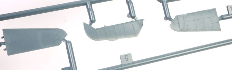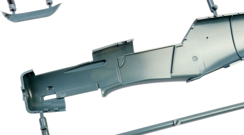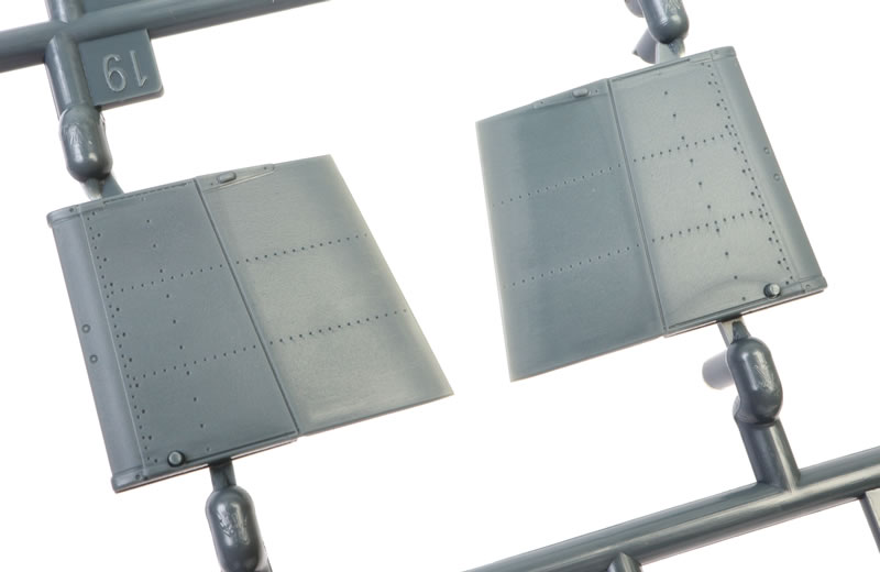 The plastic parts are everything we have come to expect from a new Eduard release—just fewer of them. Surface textures are gorgeous, with recessed panel lines and rows of rivets rendered in varying weights and depths.