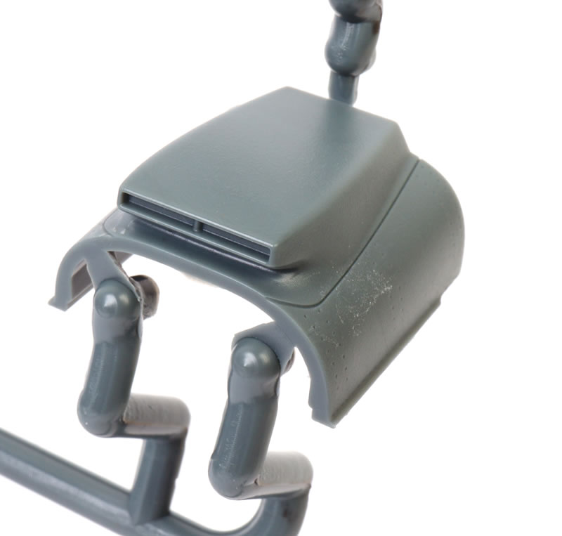The resin parts also include a squared-off box behind the pilot’s head. On the Bf 109 G this covered the main battery; however, on the Avia S-199 it usually housed radio-related electrical equipment, with layout varying by production batch and radio fit. The cover itself was simply reused unchanged from the Bf 109 G.