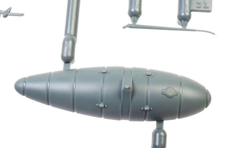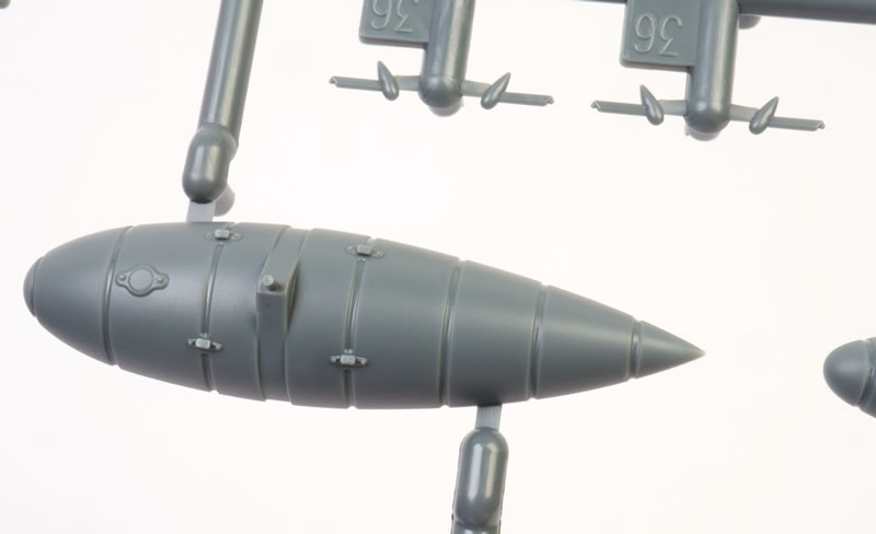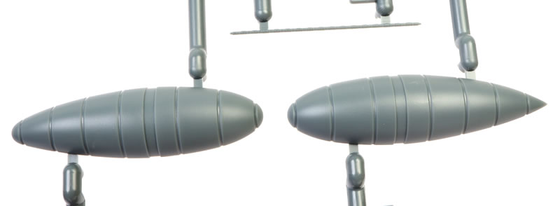 Two styles of 300 litre drop tank and ETC rack are on the sprues but they are not used for this boxing.
