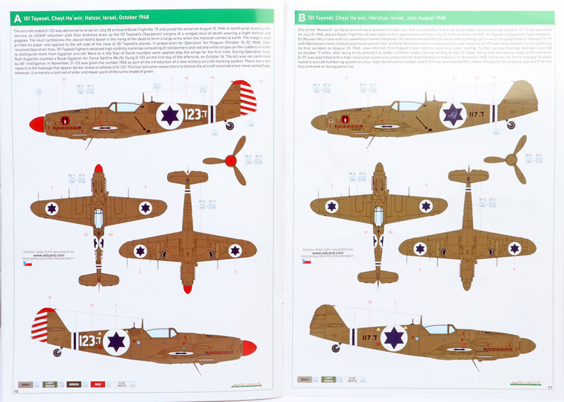 Decals are printed by Eduard. They offer the option of peeling off the decal film, although they work well even if the film is left in place.