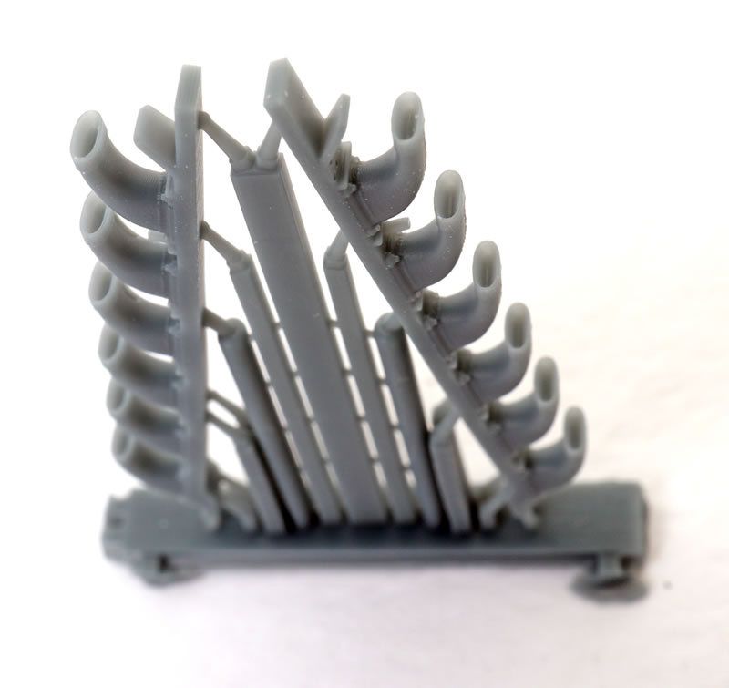 Exhausts are supplied as one part per side. They feature weld beads, bolt head detail and precisely hollowed exhaust stacks.