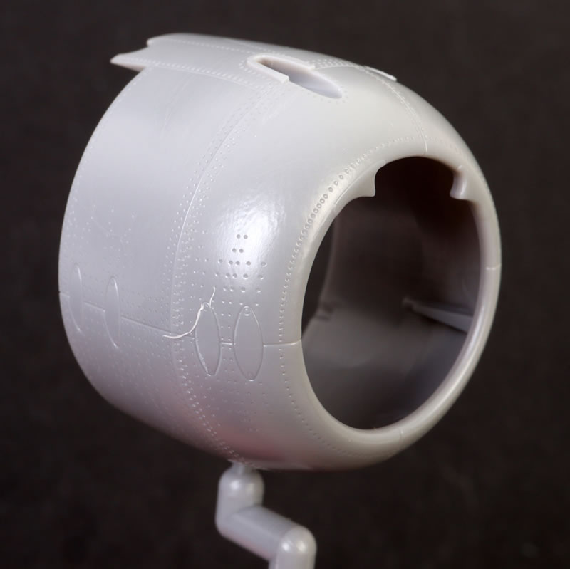 Surface textures combine finely recessed panel lines with subtle rows of rivets—delicate, consistent, and convincing.
