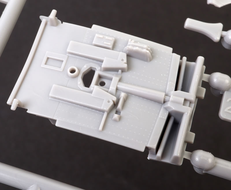The instrument panel features crisp raised detail with optional decal overlays for the dials. Once painted and dry-brushed, it should look good.