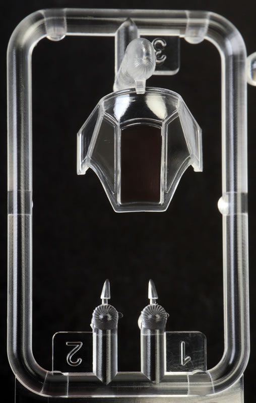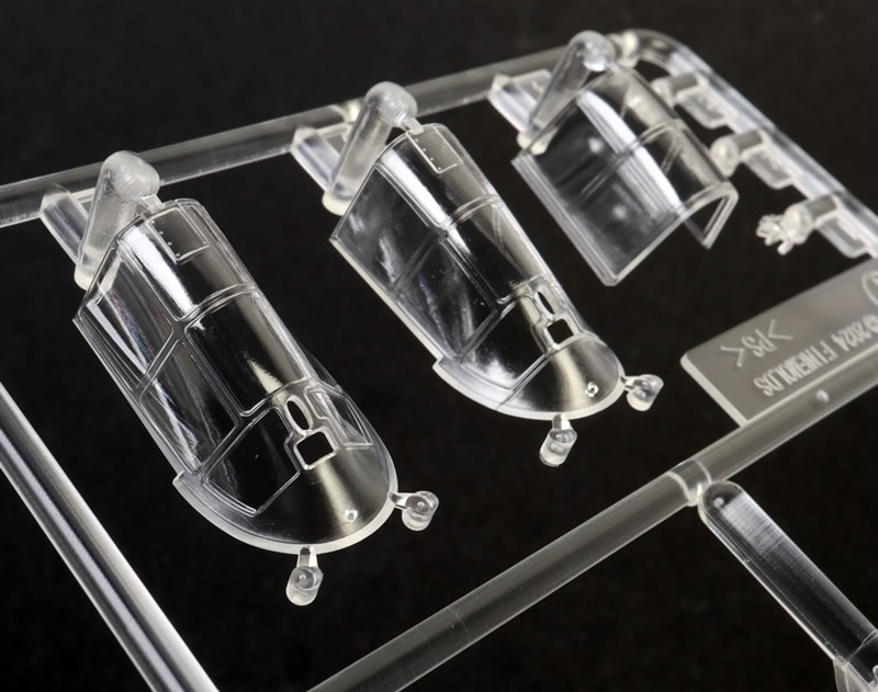 Clear parts are presented on a single sprue. They are thin, crystal-clear, and distortion-free, allowing the sliding canopy to be posed open or closed.