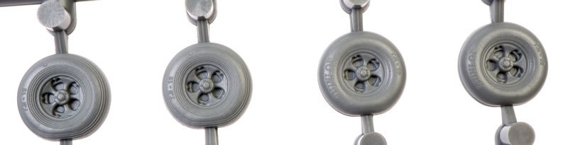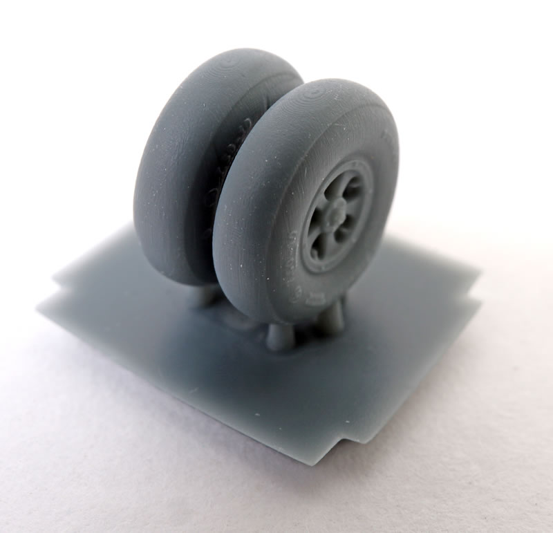 Two sets of seamless main wheels are next on the 3d printed list. These feature lovely detail on the hubs, subtle bulgings and flattening and raised lettering on the sidewalls.
