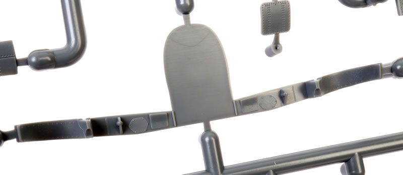 The late version of the Spitfire I and the Spitfire Mk.II feature a tiny scoop on both sides of the fuselage immediately under the windscreen, a very slightly raised saddle panel representing the later 3mm armour protection for the fuel tank just in front of the windscreen, and some raised sections to accommodate the external armoured glass of the later windscreen.