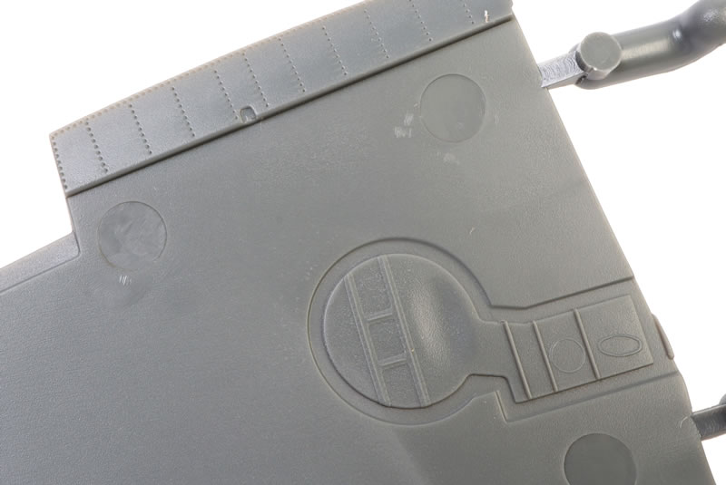The fasteners are visible on the real aircraft (this time Temora's Mk.XVI, which features flatter paintwork) but if the kit representation is not to your taste it will be a simple matter to sand them down.