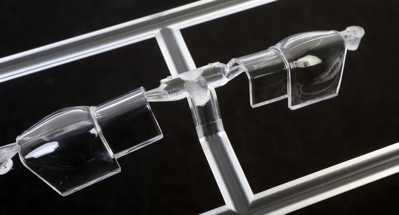 Two sets of two styles of 3d printed exhausts are hollowed out on the ends of the ejectors.