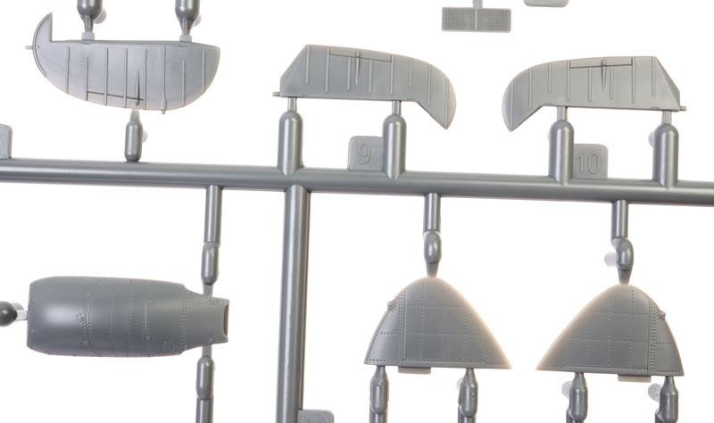 The kit is broken down conventionally. The fuselage is full-length with the upper and lower cowling parts, radio access hatch and rear upper cowling being inserts to the main fuselage halves.