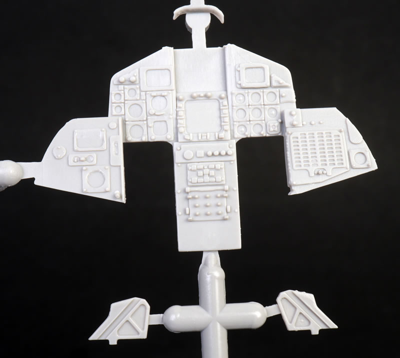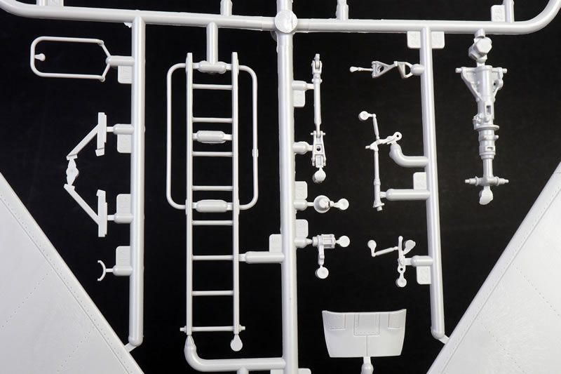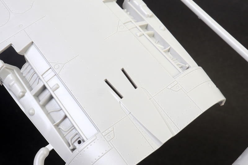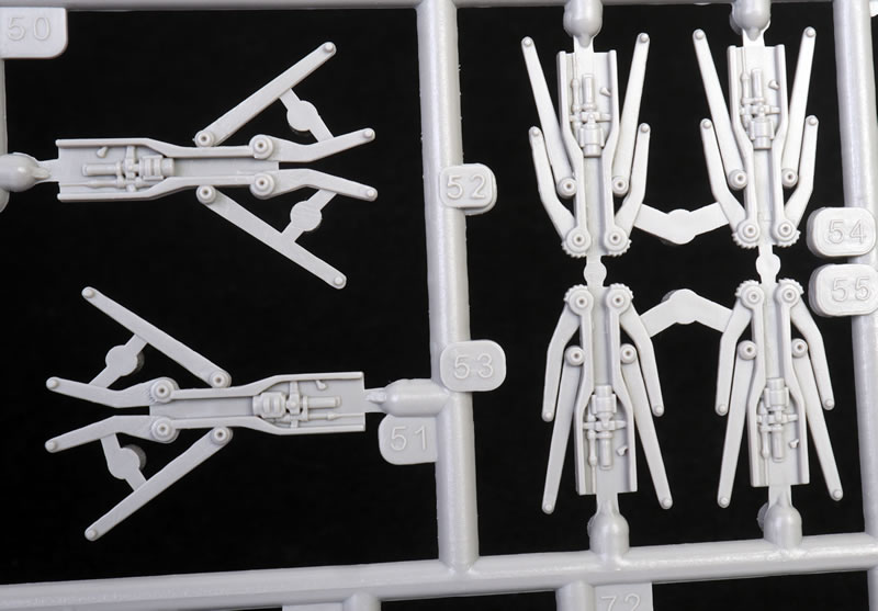 Undercarriage bays are fully boxed in with delicate ribbing and hydraulic detail. The undercarriage legs also feature nice hydraulic line detail.