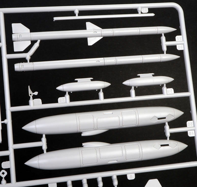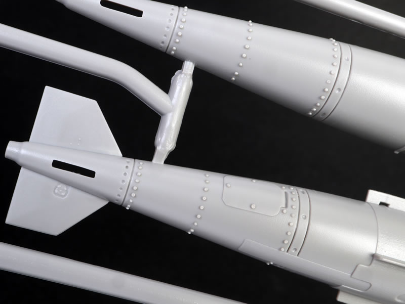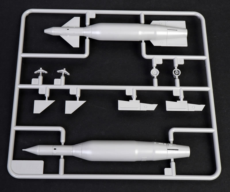 Italeri has added two new identical plastic sprues (Sprue N) that contain two 1,000 lb bombs. Other early-production GR.1 characteristics are either already on the sprues or will require some minor surgery.