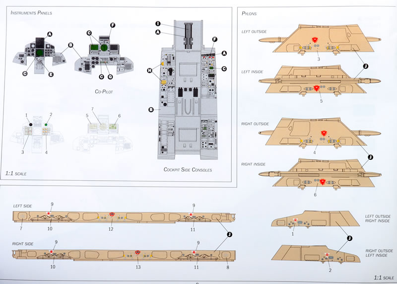Inside Italeri’s large top-opening box are 537 light grey plastic parts (136 parts not used), 24 clear parts (one part not used), 61 photo-etched parts on one fret; six flexible vinyl parts, two self-adhesive die-cut Kabuki masks, two 1.4 x 8mm screws, a large Cartograf decal sheet and a 56 page instruction book.