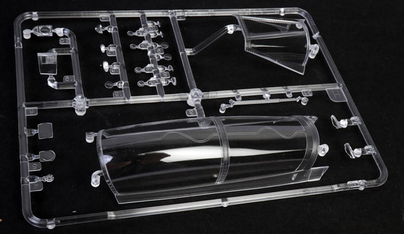 Clear parts are thin and free from distortion. The big two-piece canopy may be posed open or closed. Detonation cord is moulded onto the inside of the canopy - nice touch. A support strut is supplied for the open canopy option.