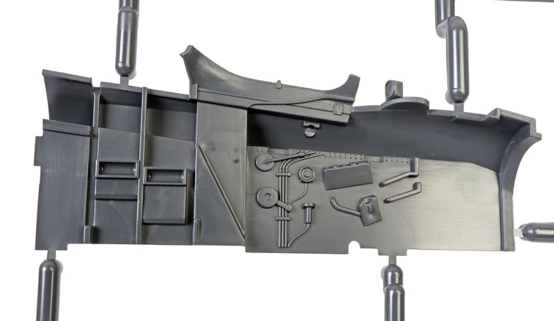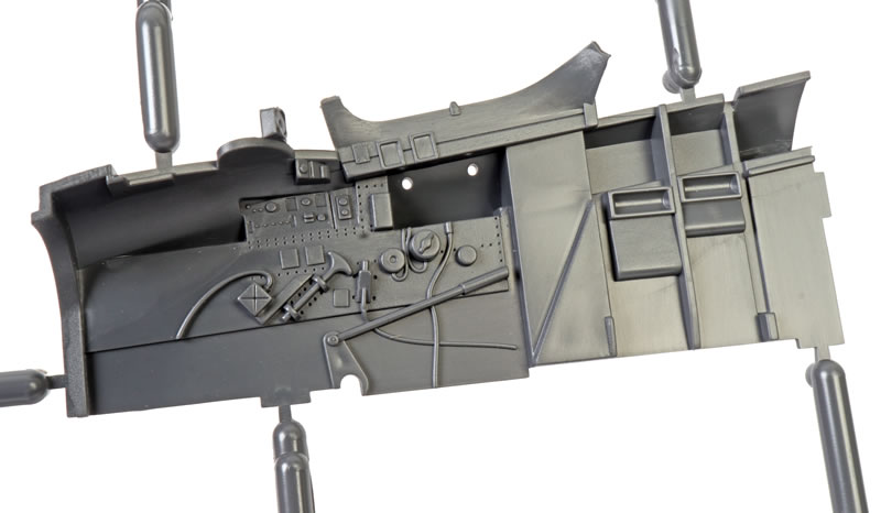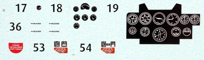Cockpit detail is busy and authentic. The instrument panel may be carefully painted or the overlay decal may be used.