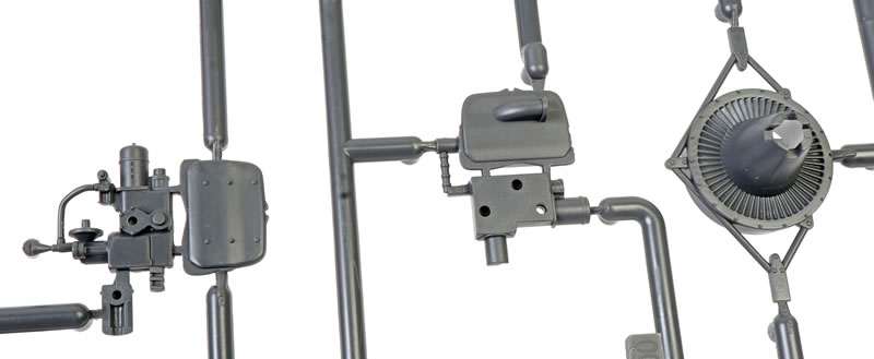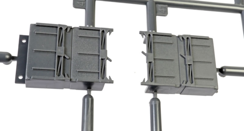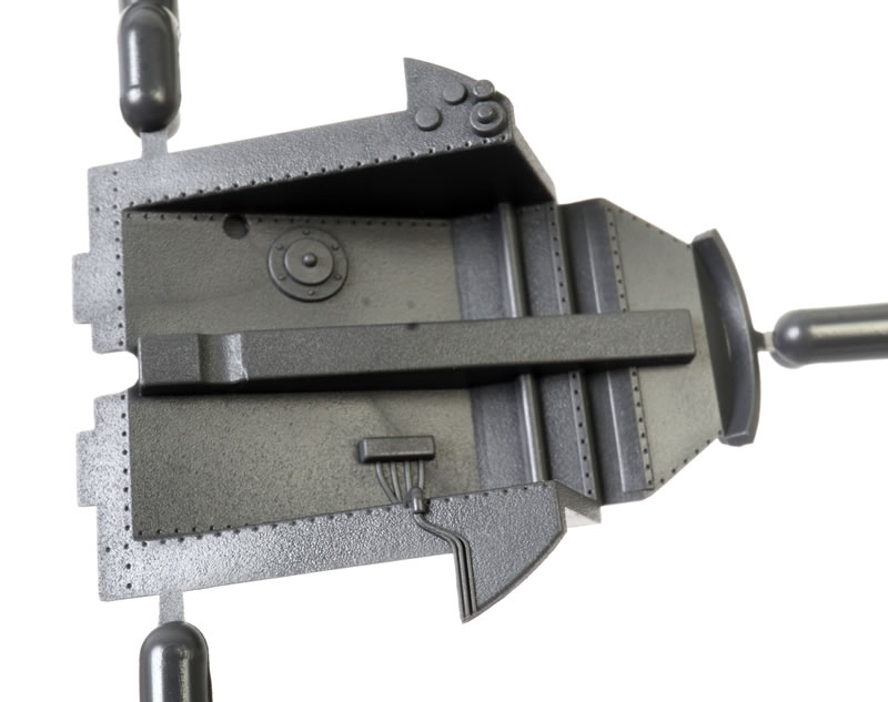 Cannon, cannon bays and ammo feeds are all offered behind open hatches. These may be left off or glued closed.