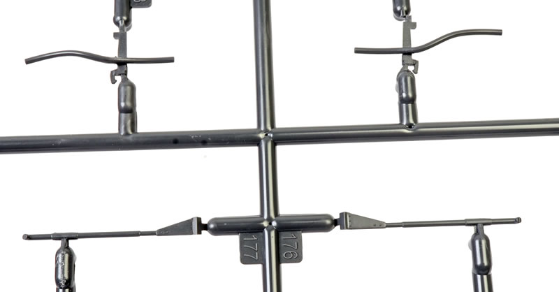 Convincing surface textures including recessed panel lines and rivets; high level of detail; dropped or raised flaps and speed brakes; alternative parts for canopy, engine display, PR nose and more; perfectly printed decals; good outline and detail accuracy. |