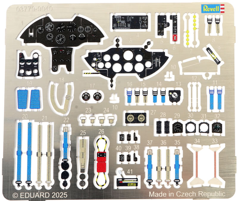 The seat offers similar options, with a moulded-on harness, blue-coloured photo-etched straps or a seated pilot.