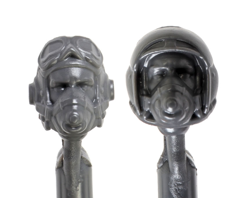 We drill down to a deeper level of options with two heads being offered for the pilot – always better than one! One wears a hard helmet while the other is equipped with a WWII-style leather flying helmet, oxygen mask and goggles. The sculpting of the heads is really well done.
