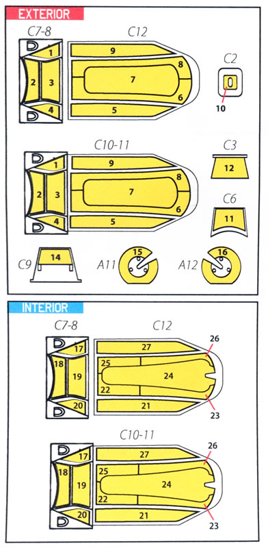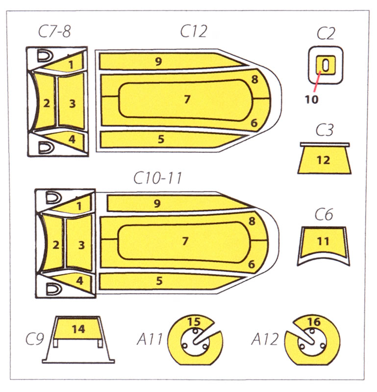 Amongst these are their growing "Scale Mask" series. These are die-cut, self-adhesive masks on yellow "Kabulki" paper - a slightly flexible material that will allow enough flex to sit down into recesses or cope with curves, yet remains rigid enough to keep their shape.