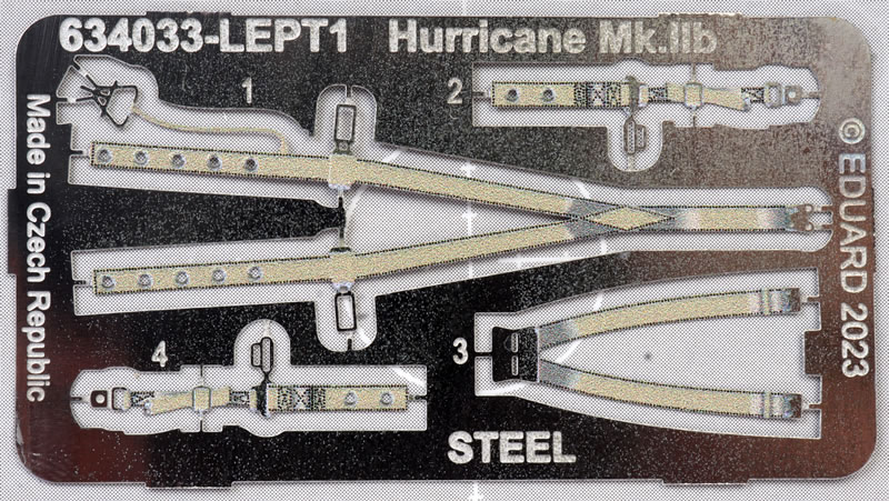 The STEEL photo-etched fret supplies nice flexible pre-coloured Sutton Harness for the pilot.