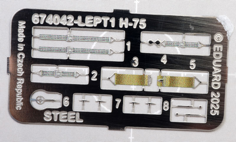 The colour PE set covers the seat belts with twelve parts that will require careful attachment to the kit’s seat.