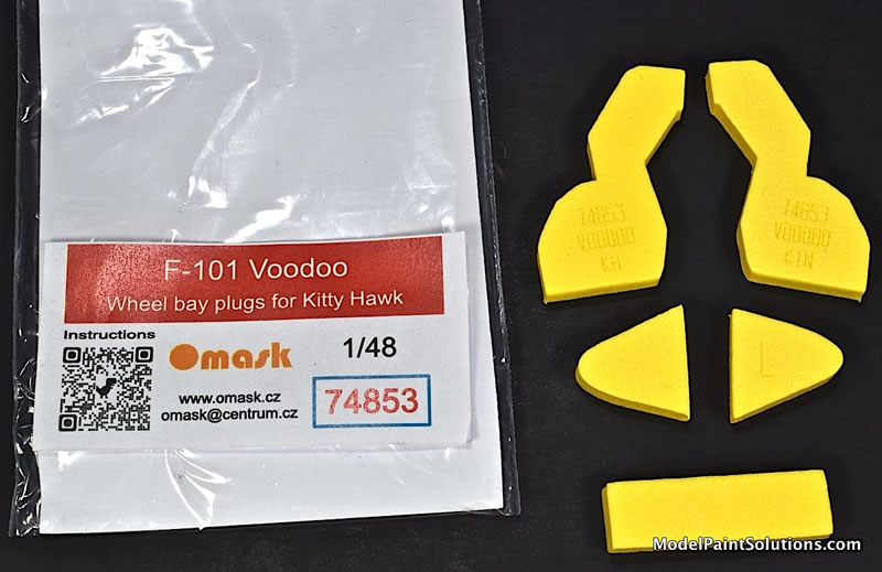The pictures show the Wheel Well Masking Plug set intended for the 1/48 Kitty Hawk F-101 Voodoo.