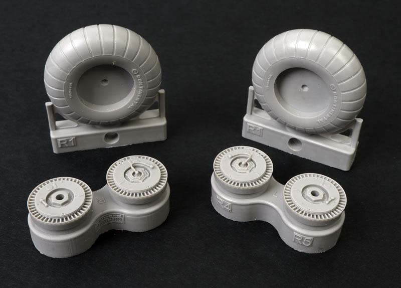 Six resin parts are supplied. These are the main wheels with separate inner and outer hubs.