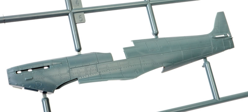 The two fuselages are contained on Sprues K (early version) and L (late version), with the wings on Sprues E (lower wing half) and Sprue G (upper wing halves). The fuselage halves on Sprue G represent the earlier Mk.Vb with the external armoured windscreen glass.