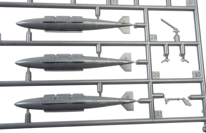Ordnance is supplied on two big sprues. Included are AIM-120 AMRAAM and AIM-9X milliles, plus GBU-32 JDAM. GBU-31 JDAM and GBU-12 bombs.
