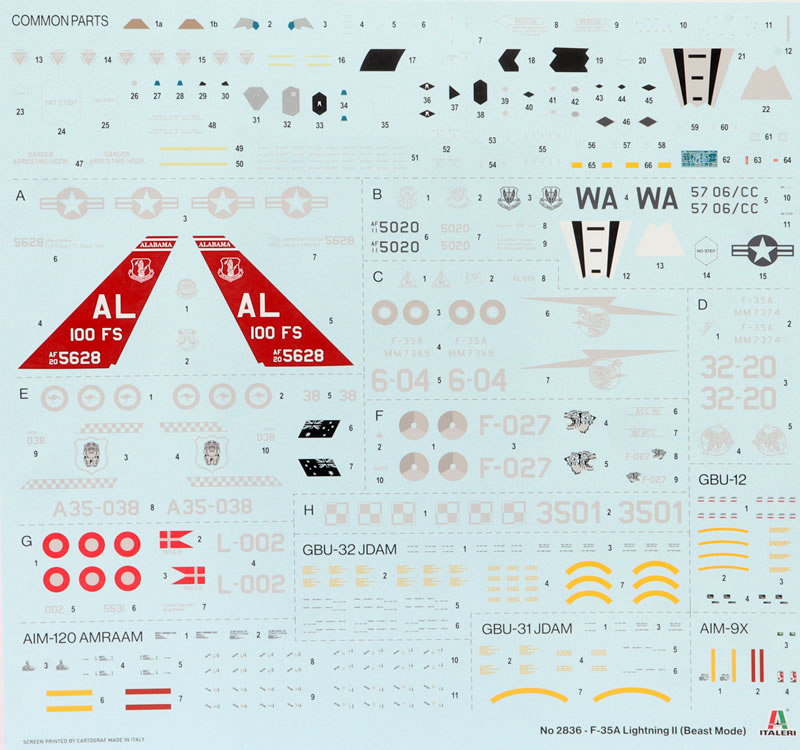 The Cartograf-printed decal sheet is sharp, with good colour density, markings for weapons and fine stencil data. The inclusion of multiple international operators is particularly welcome, reflecting the global uptake of the F-35 programme.